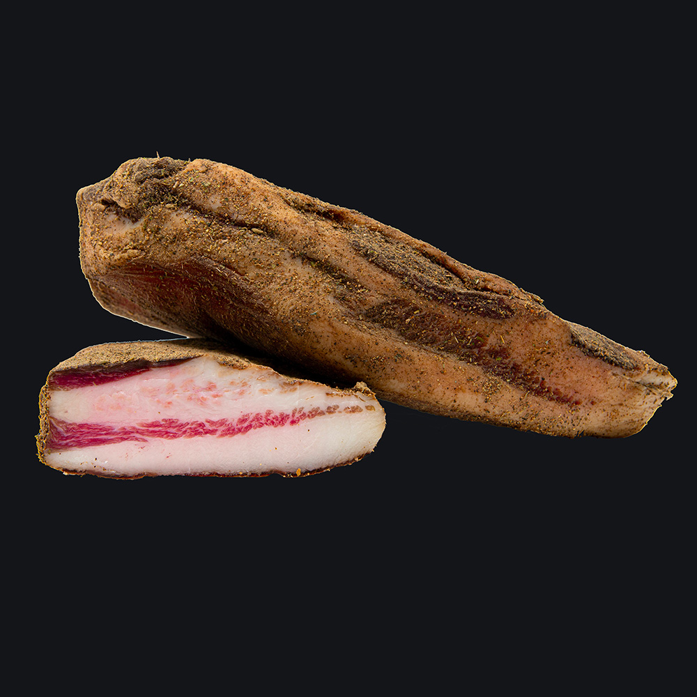 Taglio selezionato tra la guancia e la spalla del maiale, e’ caratterizzato da una leggera parte magra e una con maggior grasso che conferisce al prodotto la tenerezza che lo contraddistingue.